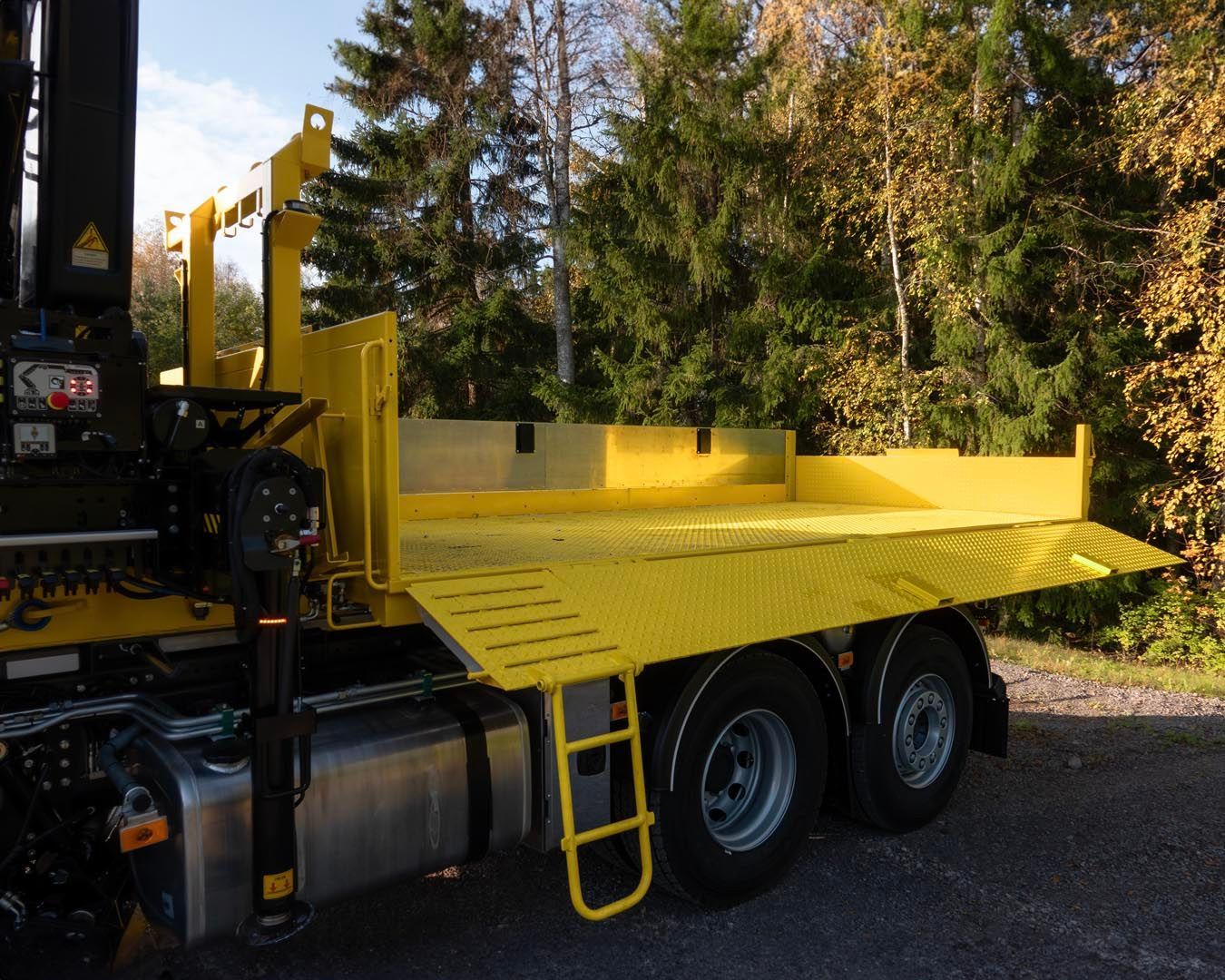 Vaihtolavaprojekti valmistunut Hämeenlinnan kaupungille. Erikoisuutena hydraulisesti avautuvat sivulaita ja perälauta, joiden lisäksi Hiab X-HiPro 192 vaihtolava-asennus.