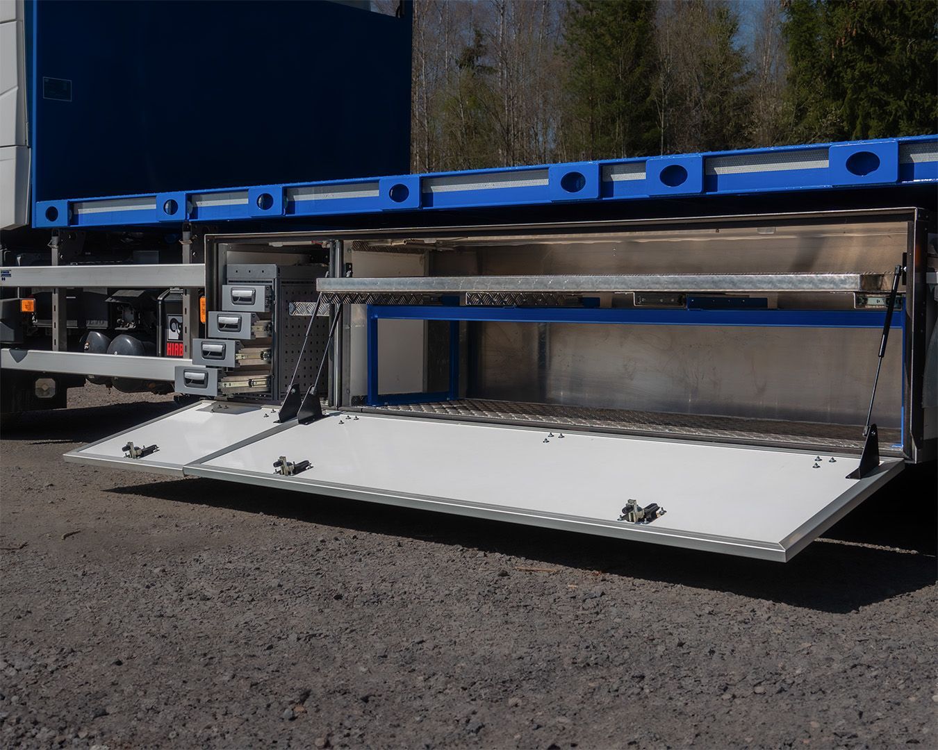 Olemme valmistaneet Puomitek:ille useita lavettiautoa työkoneiden ja niiden lisälaitteiden kuljetukseen.